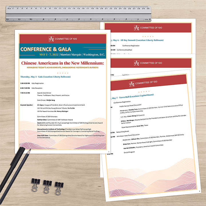 Design an event flyer/agenda in Microsoft Word for the Committee of 100’s annual conference and gala.